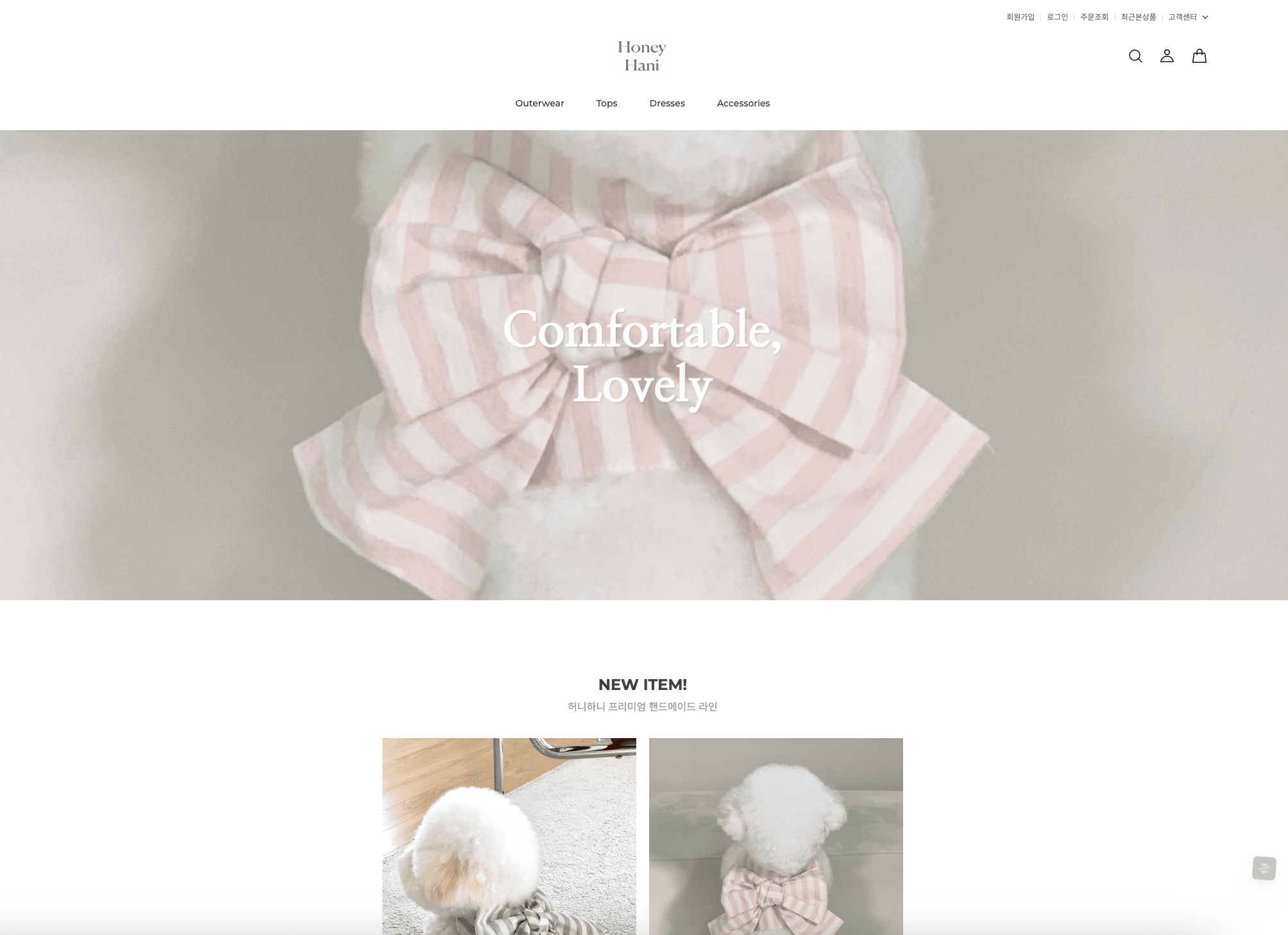 강아지들이 입었을 때 편안하고 반려인이 보았을 때는 사랑스러운 강아지도, 반려인도 모두 행복한 허니하니가 되고싶어요