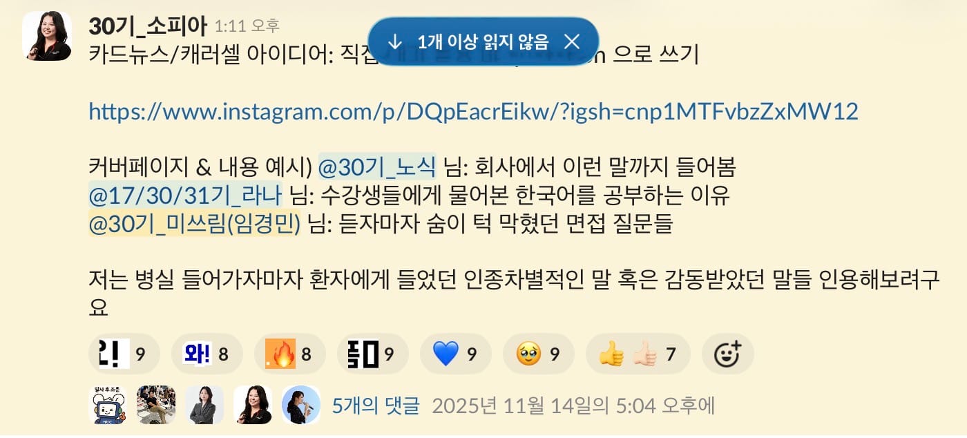 그렇게 30기 첫 오전반에 합류했습니다. 그리고 네 기수 연속으로 함께하고 있어요.