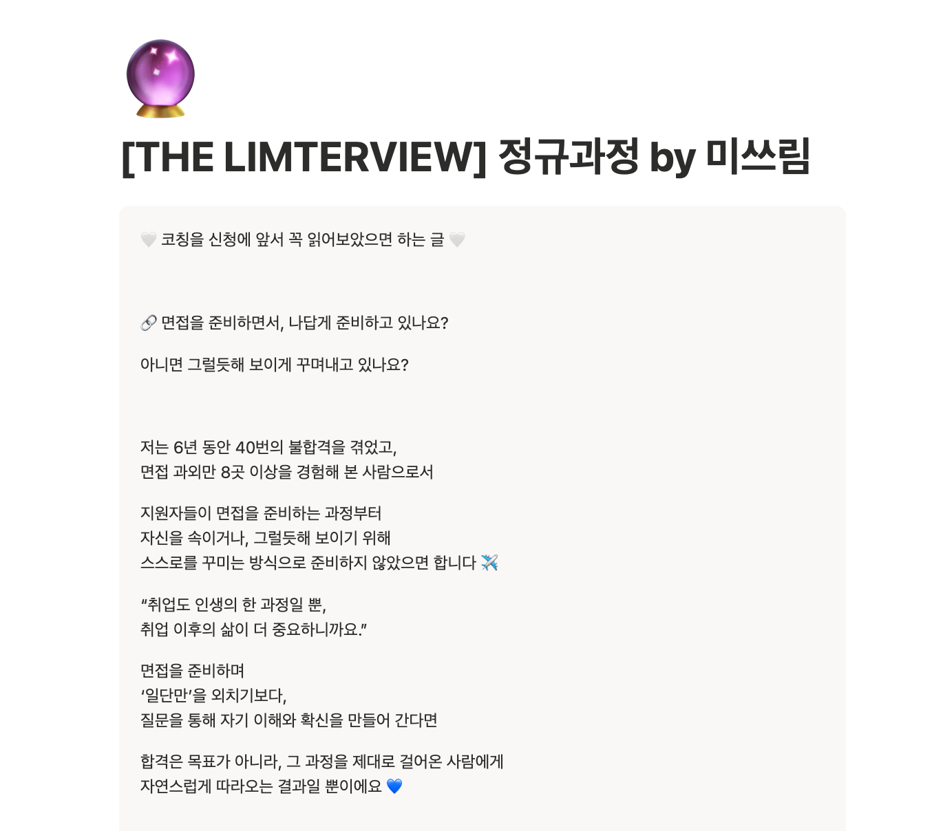 하지만 제 코칭 방식은 기존 취업 준비 시장의 문법과 달랐어요.