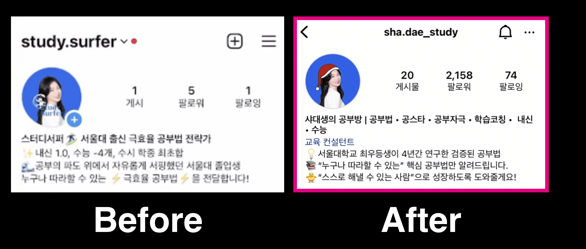 10대들의 공통된 고민은 공부 성적이에요. 어떻게 공부해야 할지, 여러 고민과 어려움이 있어도 편하게 물어보고 의지할 사람이 없어 더 쉽게 포기하고 힘들어하는데요. 제 계정을 통해 기댈 만한 언덕이 되어 주어서 아이들이 더 안전하고, 더 크게 성장할 수 있는 공간을 마련하고 싶어서 운영하게 되었어요.