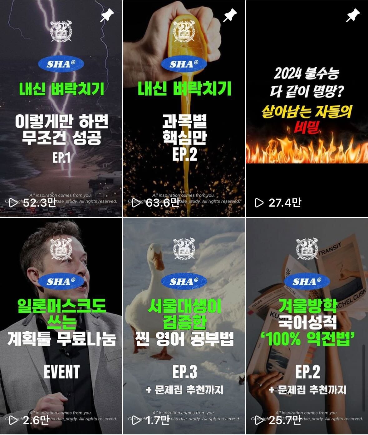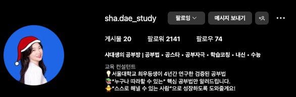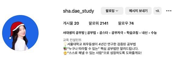 ‘샤대생의 공부방’이라는 인스타그램 계정을 운영하고 있어요.