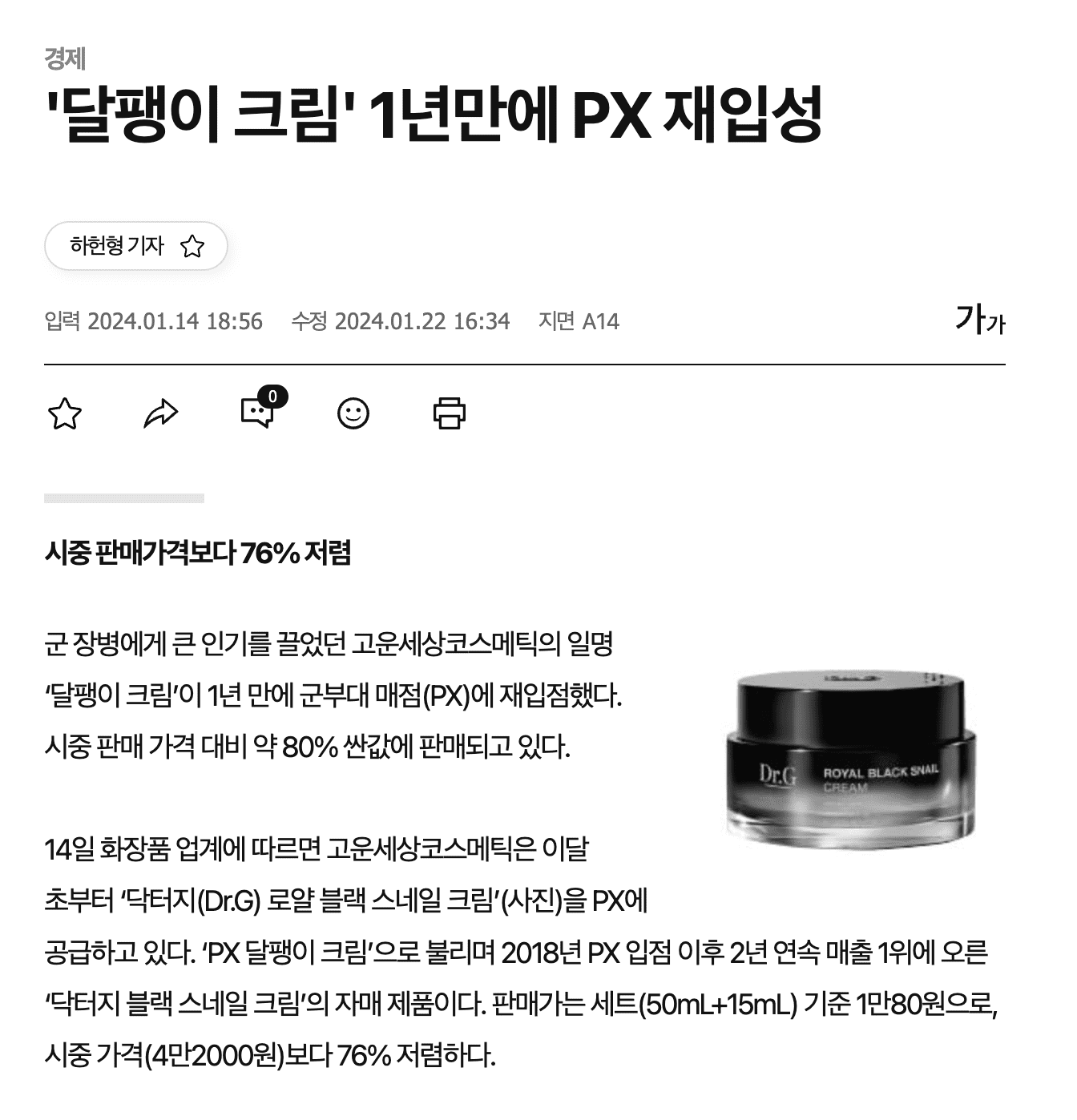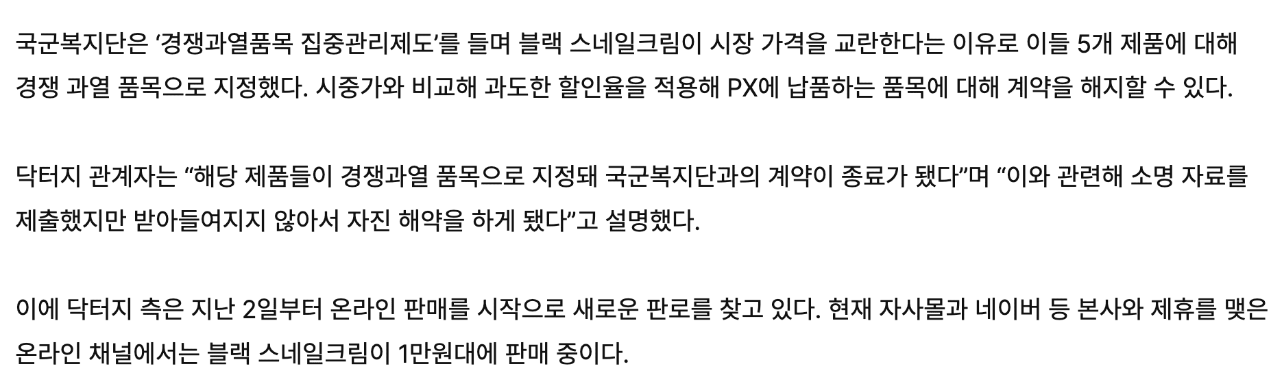 화장품 회사에서 흔히 시도하지 않는 방법 중 하나로 군대 PX에 입점한 것이 큰 성공을 거뒀어요. 입점하고 이듬해에 달팽이크림이 천만개 팔리고 매출은 1000억을 달성했죠. 인디 브랜드였던 닥터지가 시장에 성공적으로 알려지는 계기이기도 했습니다.
