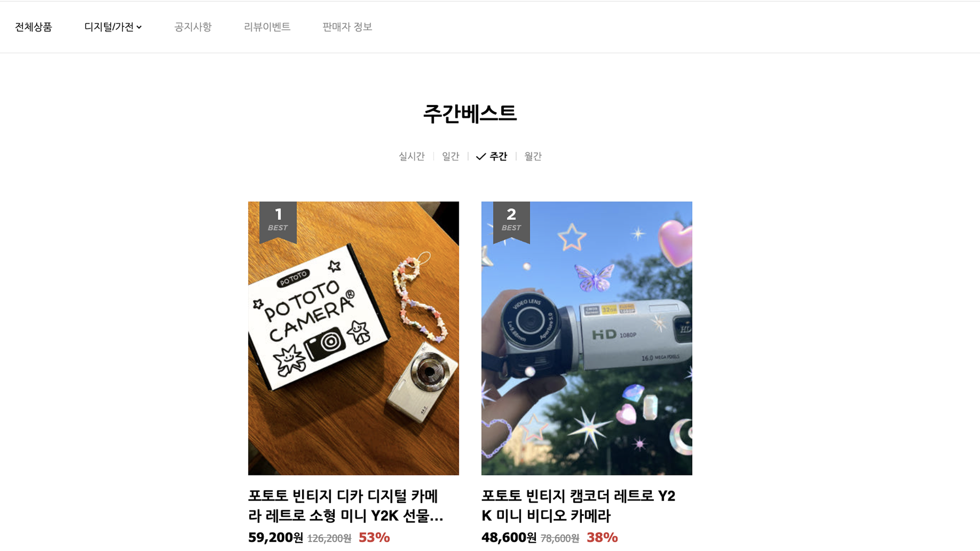 - 쿠팡 컴팩트 카메라·캠코더 부문 1위
