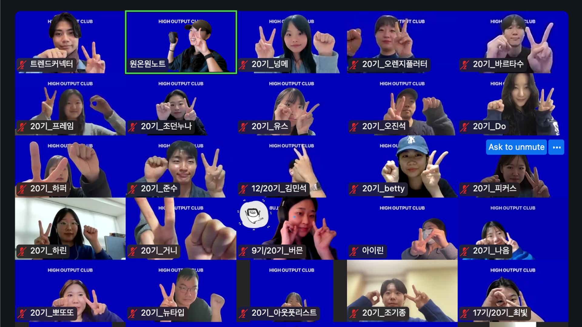 하이아웃풋클럽 20기로 합류하며 한 달 동안 23개 세션에 참여했습니다.