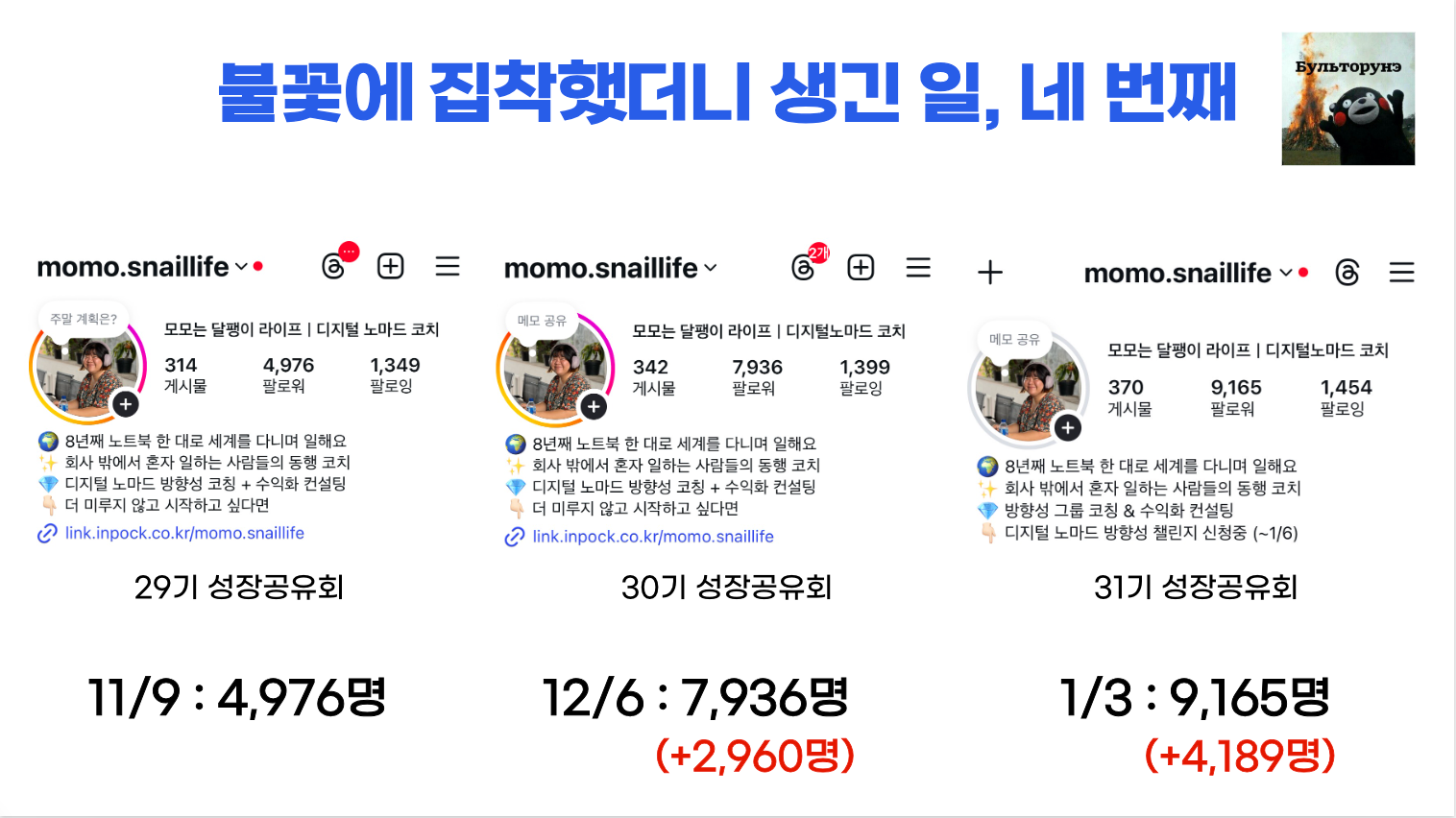 29기-30기-31기까지 매 기수 팔로워도, 매출도 급 성장하는 감사한 경험을 했습니다.