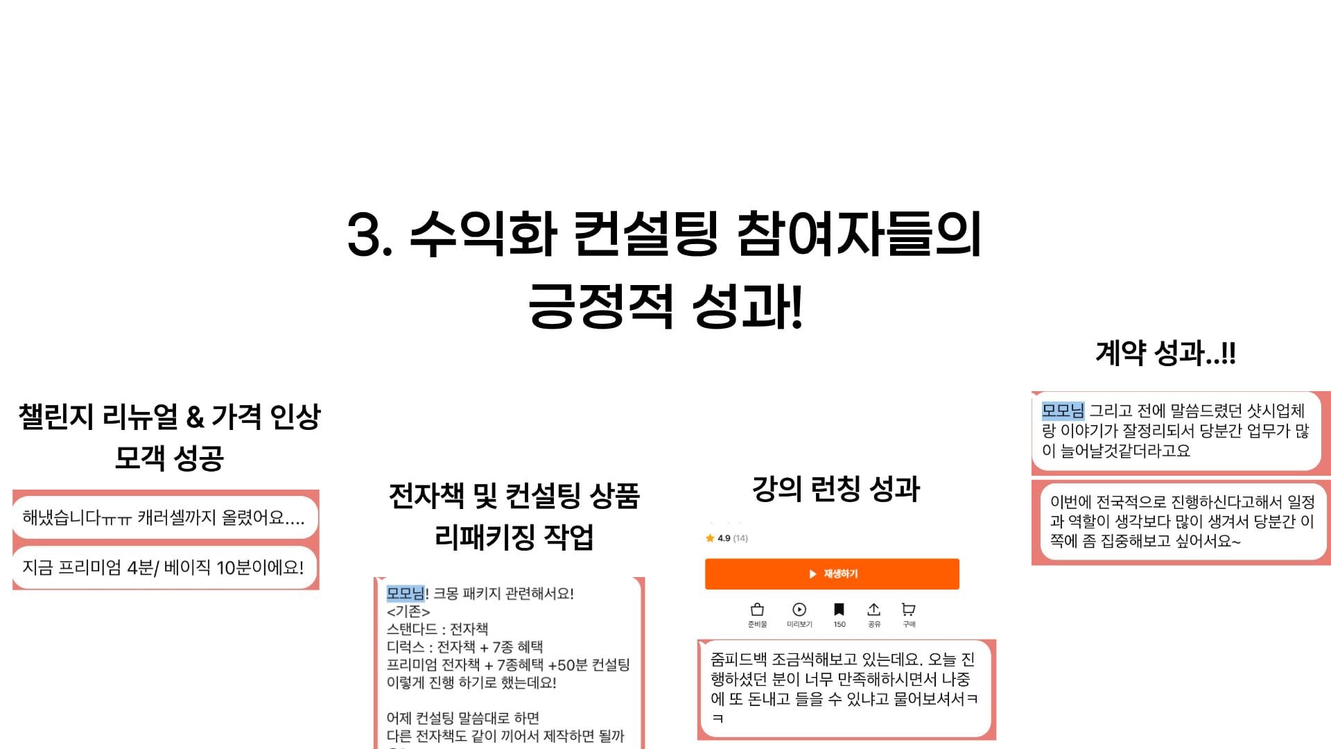 그리고 잘 생각해보니 제 프로그램에 참여하신 분들은 좋은 성과, 높은 만족을 보이고 계시더라고요.