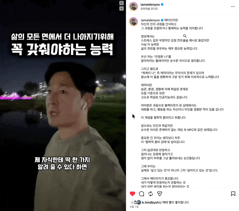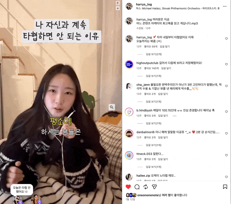 - 해리님은 릴스 하나의 배속 처리에서 삶의 인사이트를 뽑아냈어요.