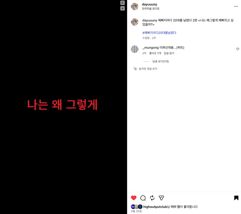 - 감정의 오르내림: 고민에서 자책으로, 다시 잘하고 싶으니까 그래로, 그리고 그냥 막 올릴래!로. 이 감정의 흐름이 편집 없이 고스란히 보여요.