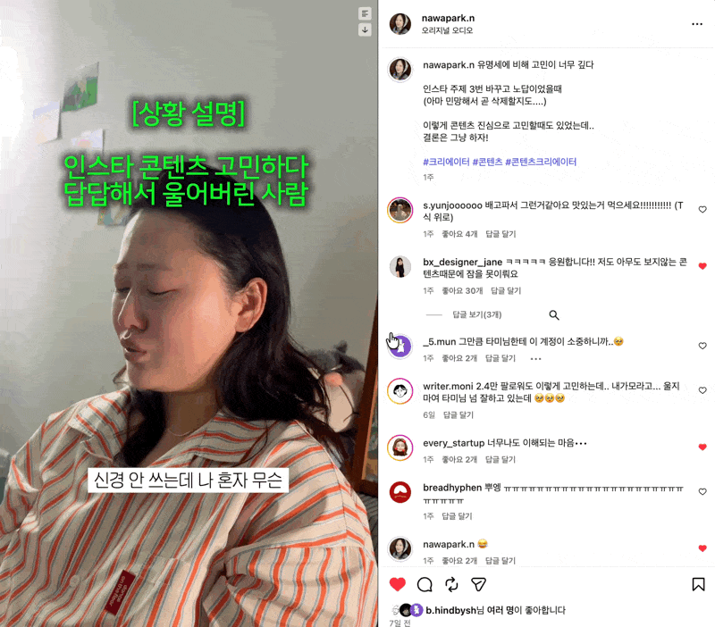 - 인스타 콘텐츠 고민하다 답답해서 울어버린 사람