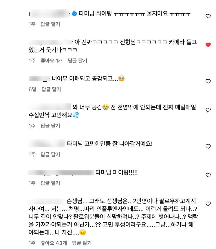 잘 포장된 모습만 보여주는 사람보다, 자기 약한 모습을 내놓을 수 있는 사람에게 사람들은 더 마음이 가요. 타미님이 우는 장면을 올린 건 위험해 보이지만, 심리적으로는 신뢰를 만드는 가장 강력한 방법이었어요.