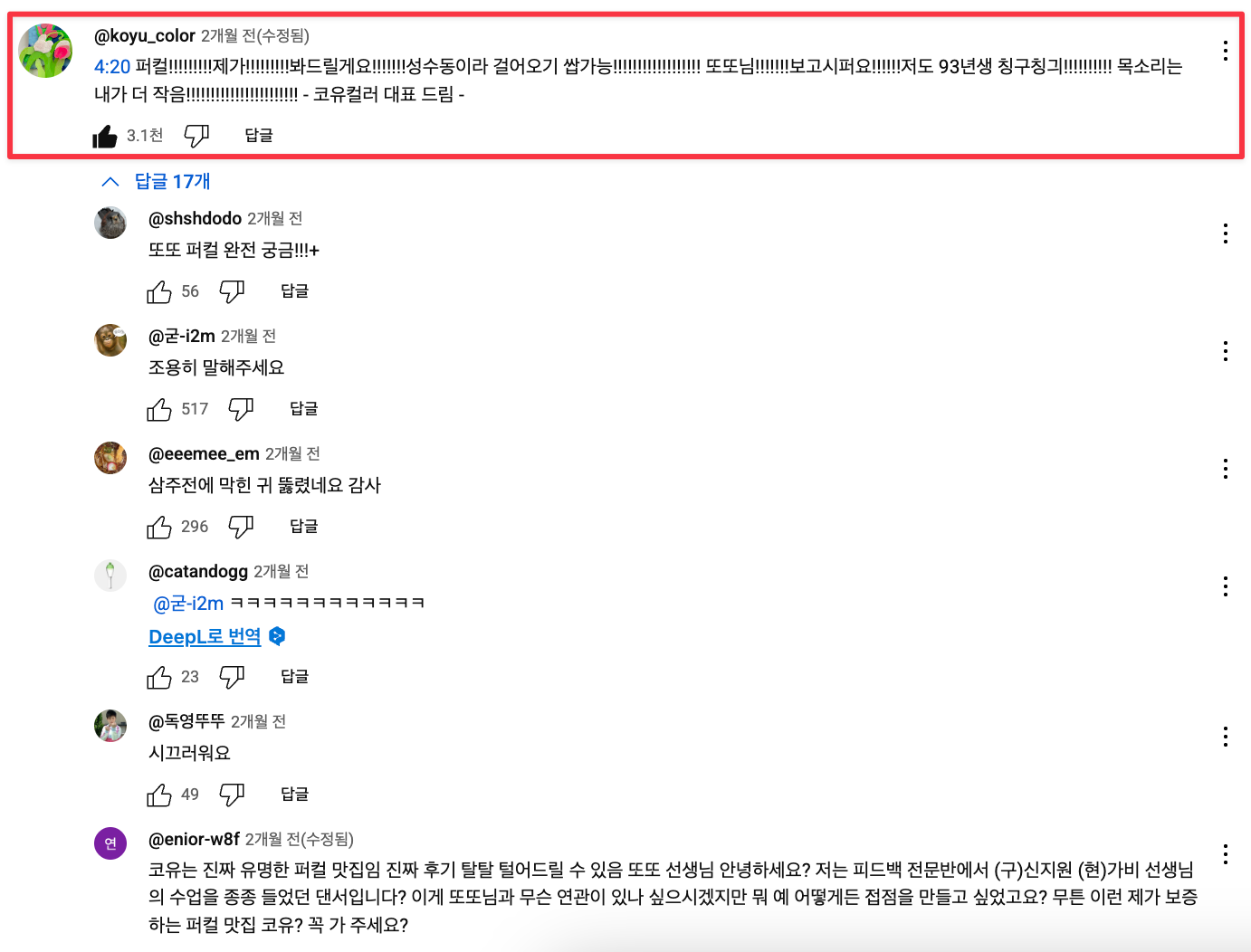 - 코유컬러 한물님은 댓글 하나로 브랜드의 첫 전환점을 만들었고,