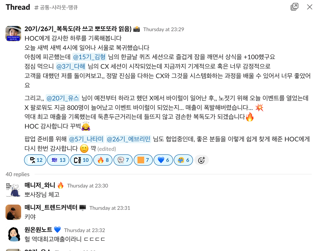 - 기회가 왔을 때 바로 이벤트로 연결한 실행력이 매출을 만들었어요.