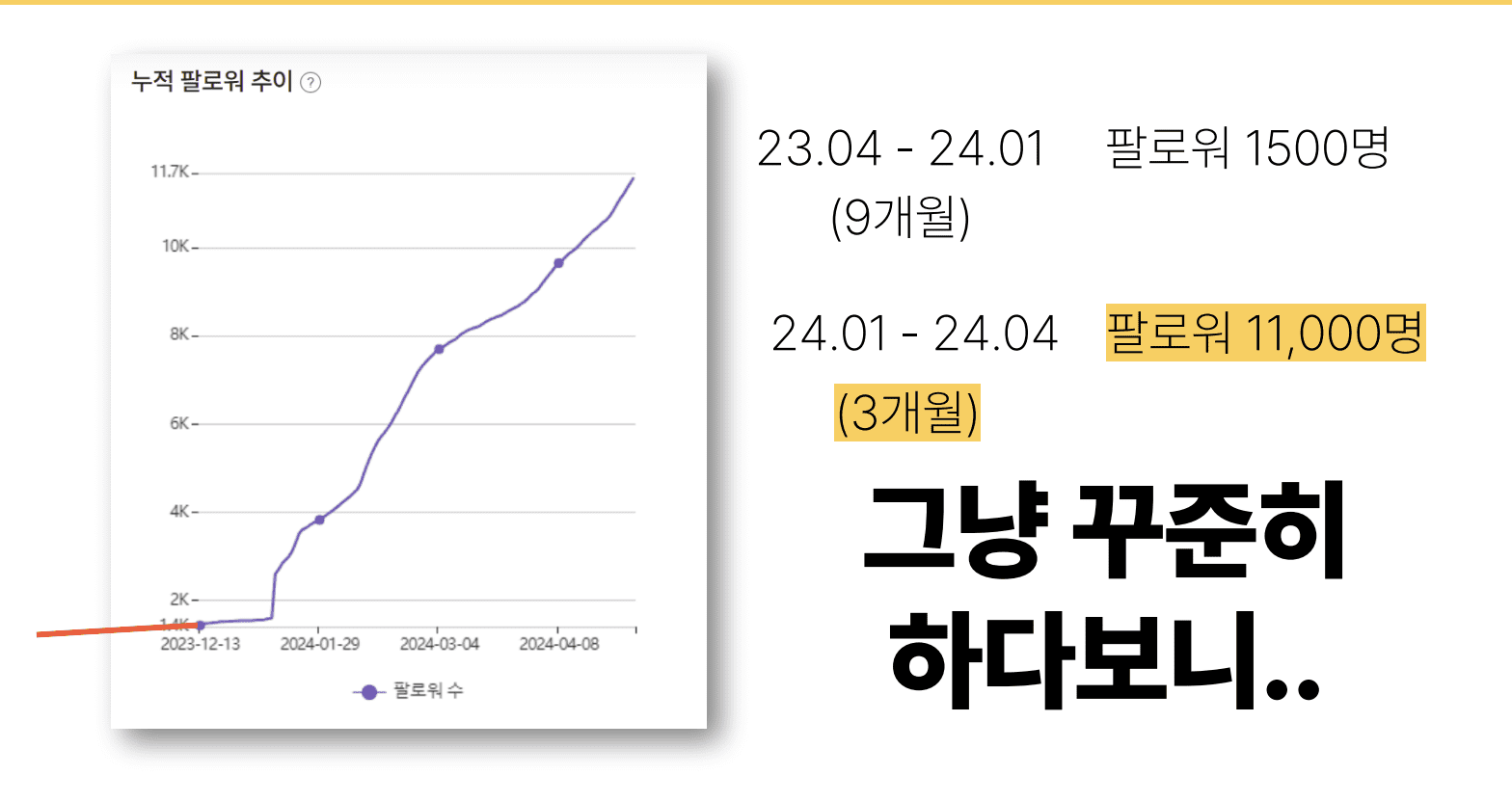 - 단기적인 성과에 일희일비하지 말고 꾸준히 콘텐츠를 발행할 것 (지속성의 힘)