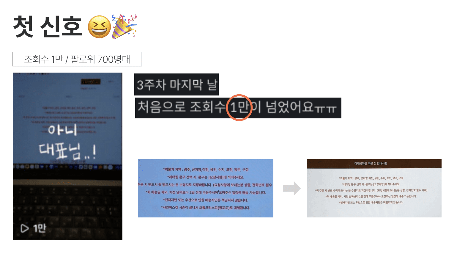 SNS 채널의 성장 과정은 단순히 선형적으로 이뤄지는 게 아니라, 계단식으로 정체기와 성장기를 오가며 이뤄지기 마련인데요. 콘텐츠 마케팅의 진정한 힘은 성과에 일희일비하지 않고 꾸준함에서 나온다는 걸 모어님의 사례가 잘 보여주고 있습니다.