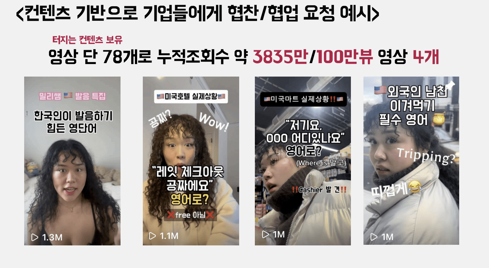 밀리님의 경우, 꾸준히 들어오는 광고 덕분에 안정적인 수익을 유지할 수 있었는데요. 단순히 팔로워 수가 많아서가 아니에요. 바로 양질의 콘텐츠, 일관된 계정 방향성, 높은 인게이지먼트 덕분이죠. 요즘은 '팔로워 수'만으로 크리에이터를 판단하는 시대가 지났습니다. 기업들은 크리에이터의 콘텐츠 퀄리티, 계정의 방향성, 팔로워들의 반응 등을 종합적으로 고려하게 되죠.