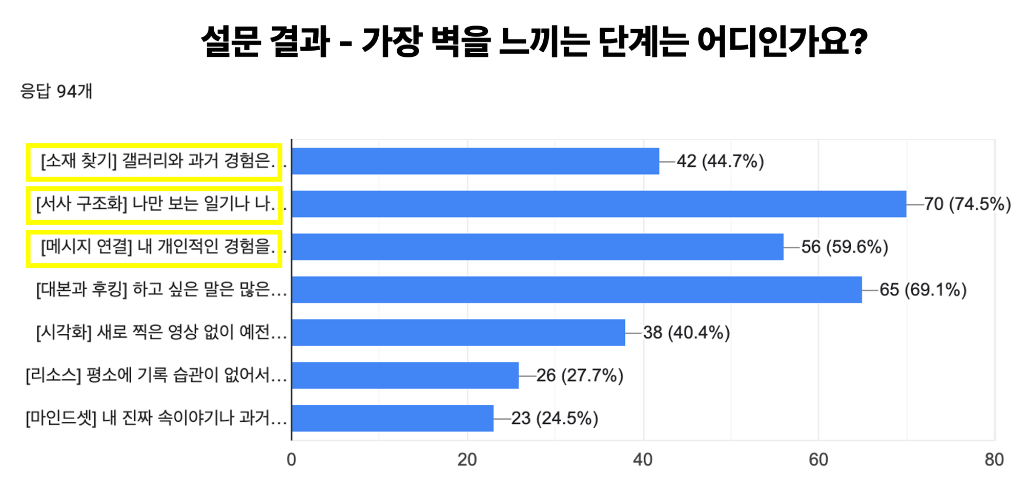 응답자의 대부분이 기술이 아닌 서사와 마음의 문제로 막막하다고 했습니다.