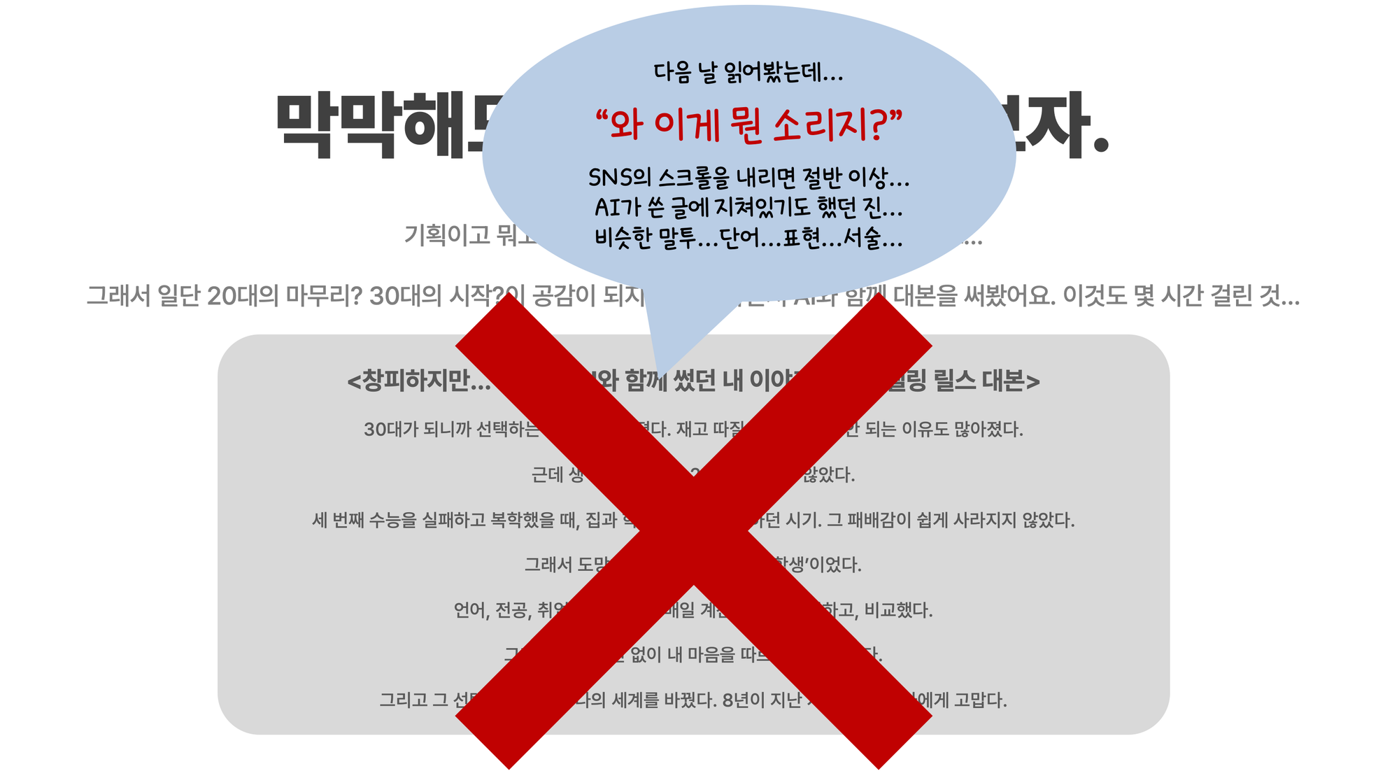 내가 읽으면서 아무 감정도 안 생기는 대본은 릴스 알고리즘도, 팔로워도 움직일 수 없다는 확신이 들었습니다.