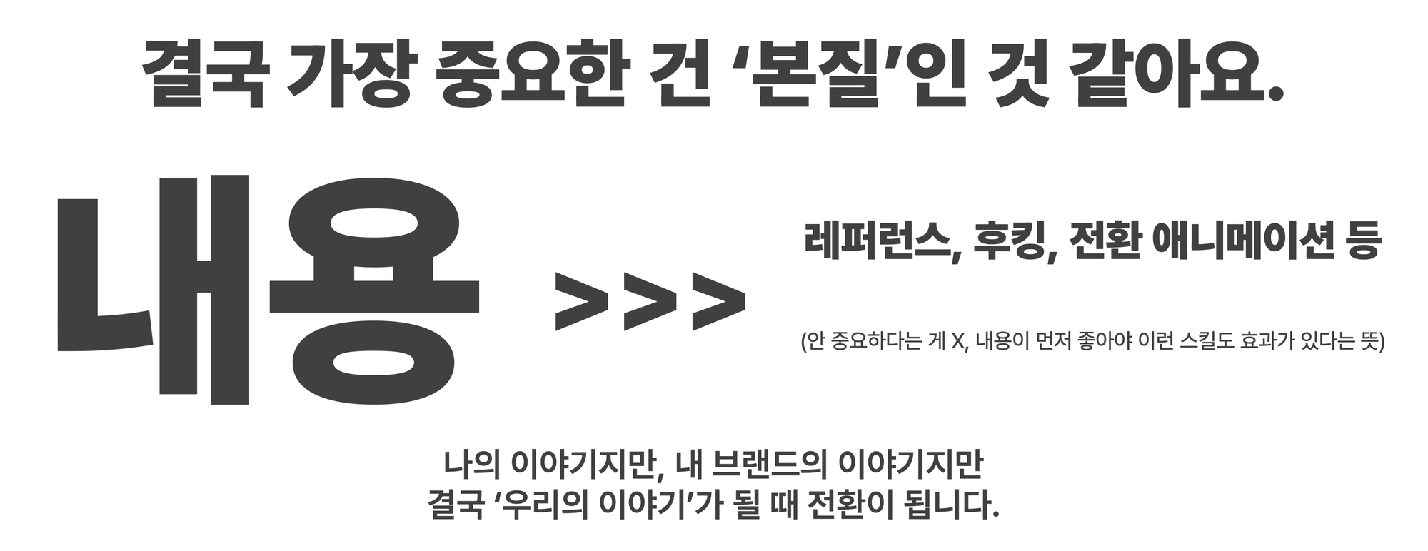 레퍼런스, 후킹 문구, 전환 애니메이션 물론 다 중요합니다.
