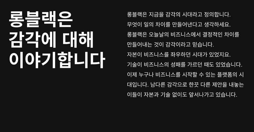 그래서 롱블랙은 "감각을 키우는 서비스"로 서비스를 정의한다.