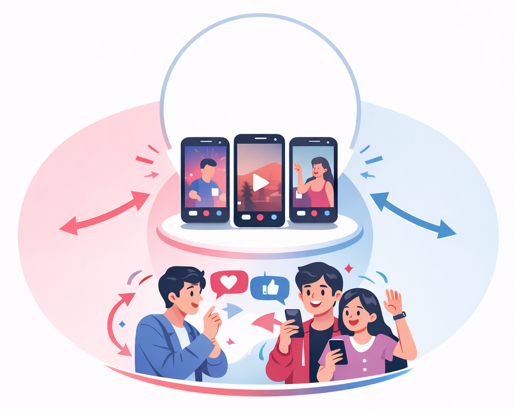 틱톡은 다른 소셜 미디어 플랫폼에 비해 의도적으로 양방향 소통을 강화한 구조를 가지고 있습니다.