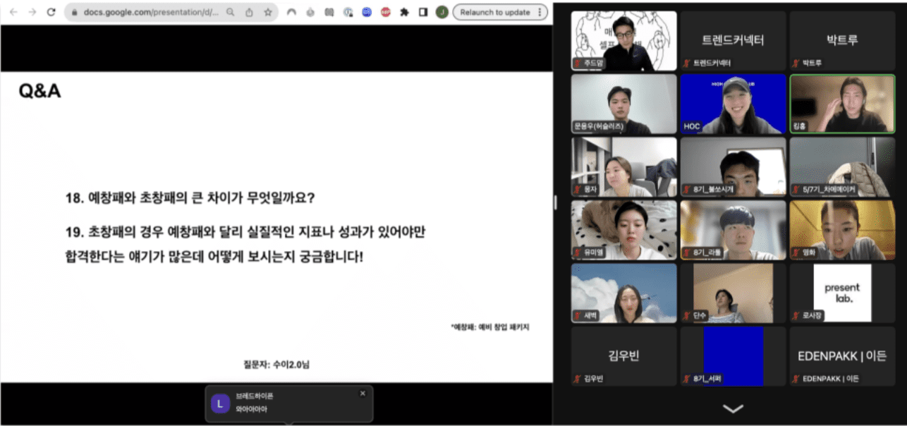 창업가 커뮤니티나 지원사업과 관련해서 이야기를 나눌 수 있는 곳이 있다면 계속해서 문의하고 물어보는 게 좋습니다. 언제 어디서 좋은 기회가 나타날지 모르니까요.
