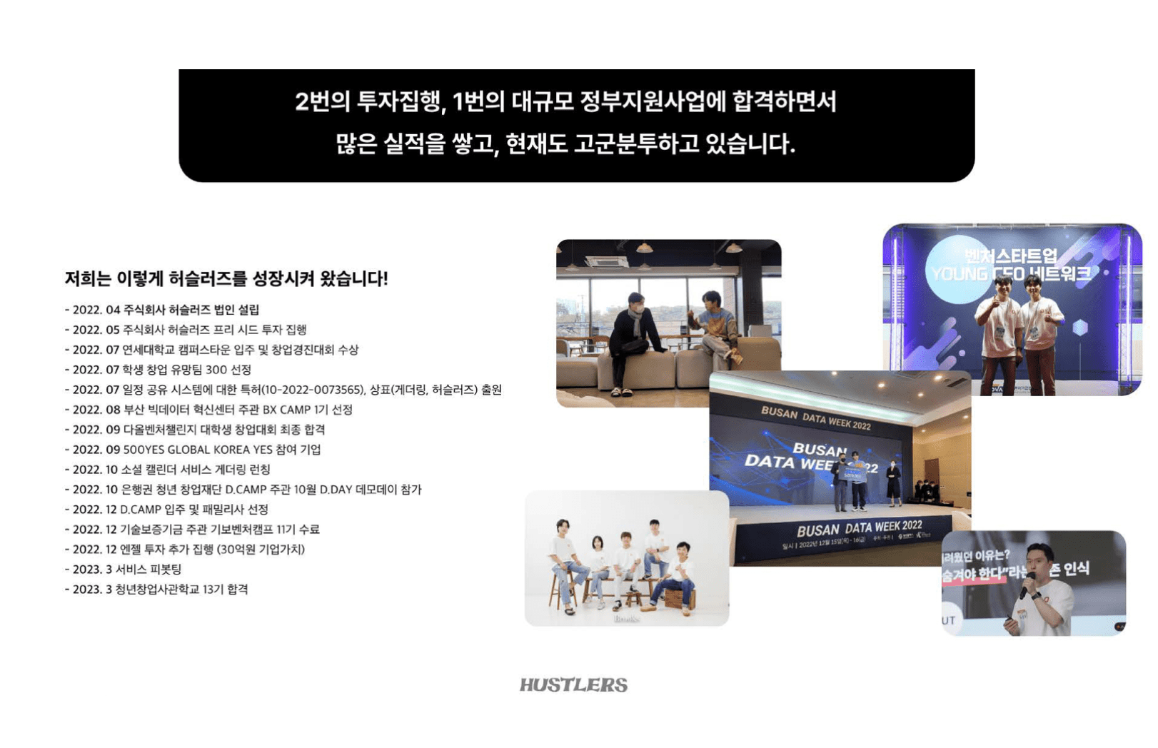 허슬러즈의 초기 창업 당시에는 특정 대학생만 지원해주는 곳을 찾아가기도 했습니다.
