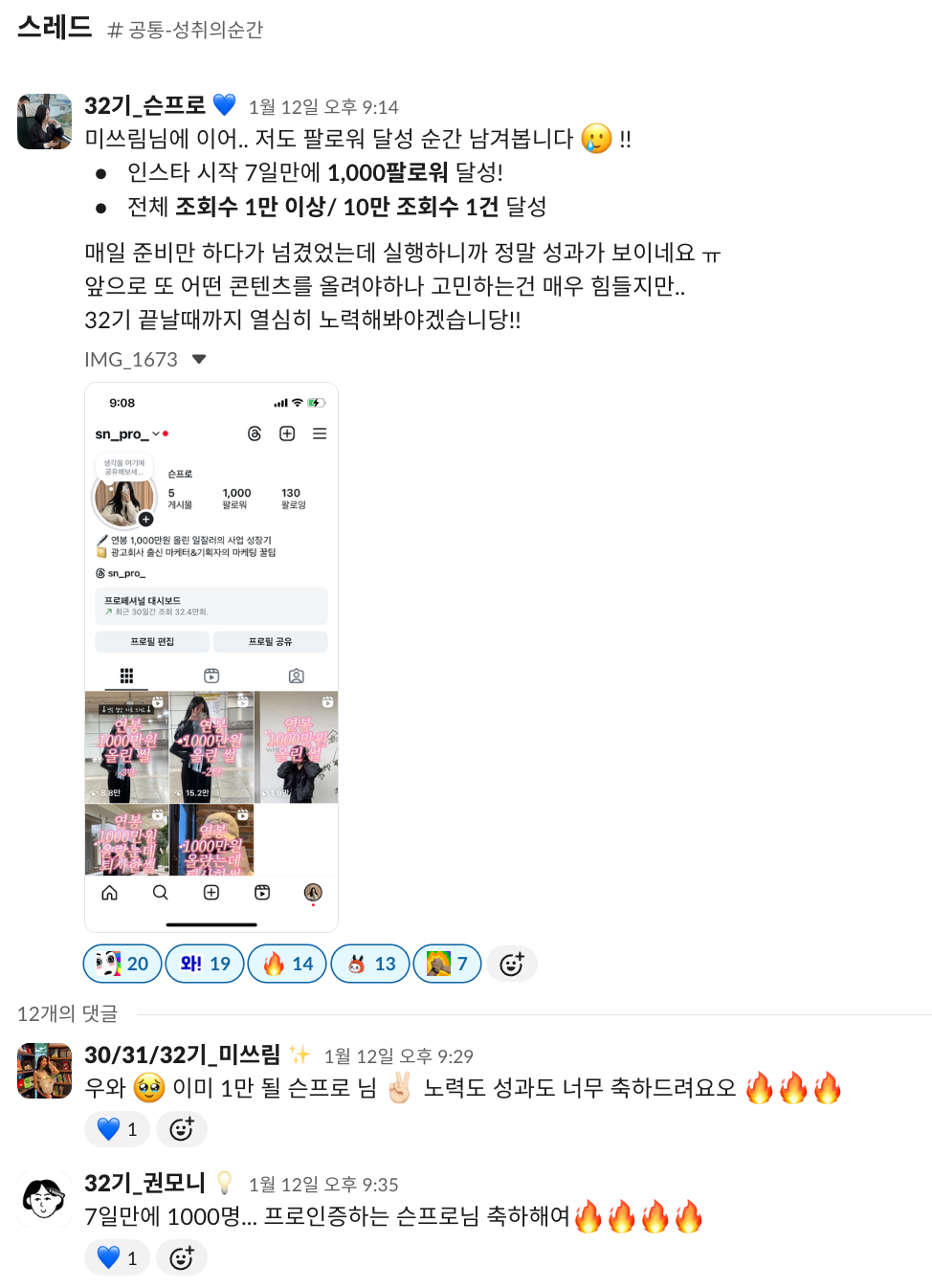 팔로워는 30명에서 1,000명으로 늘었다.