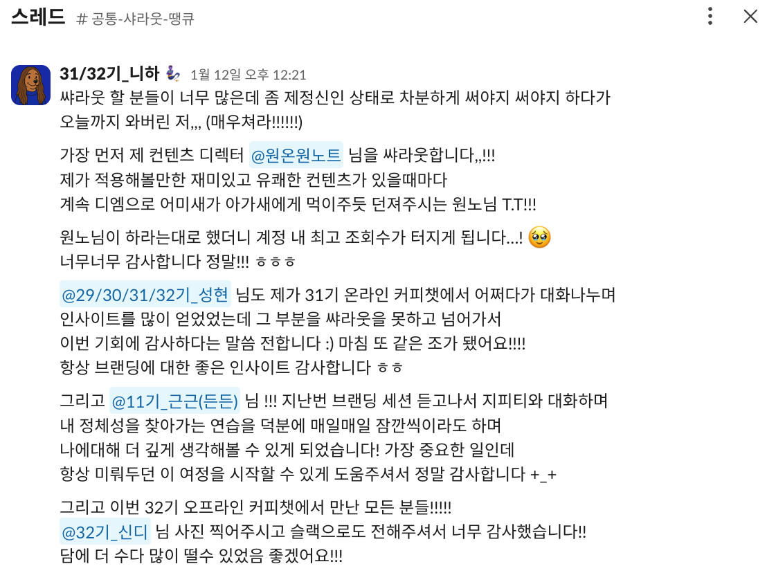 26년 1월 기준으로 함께 하고 있는 32기 멤버들 역시 이 질문을 안고 4주 여정을 시작했습니다.