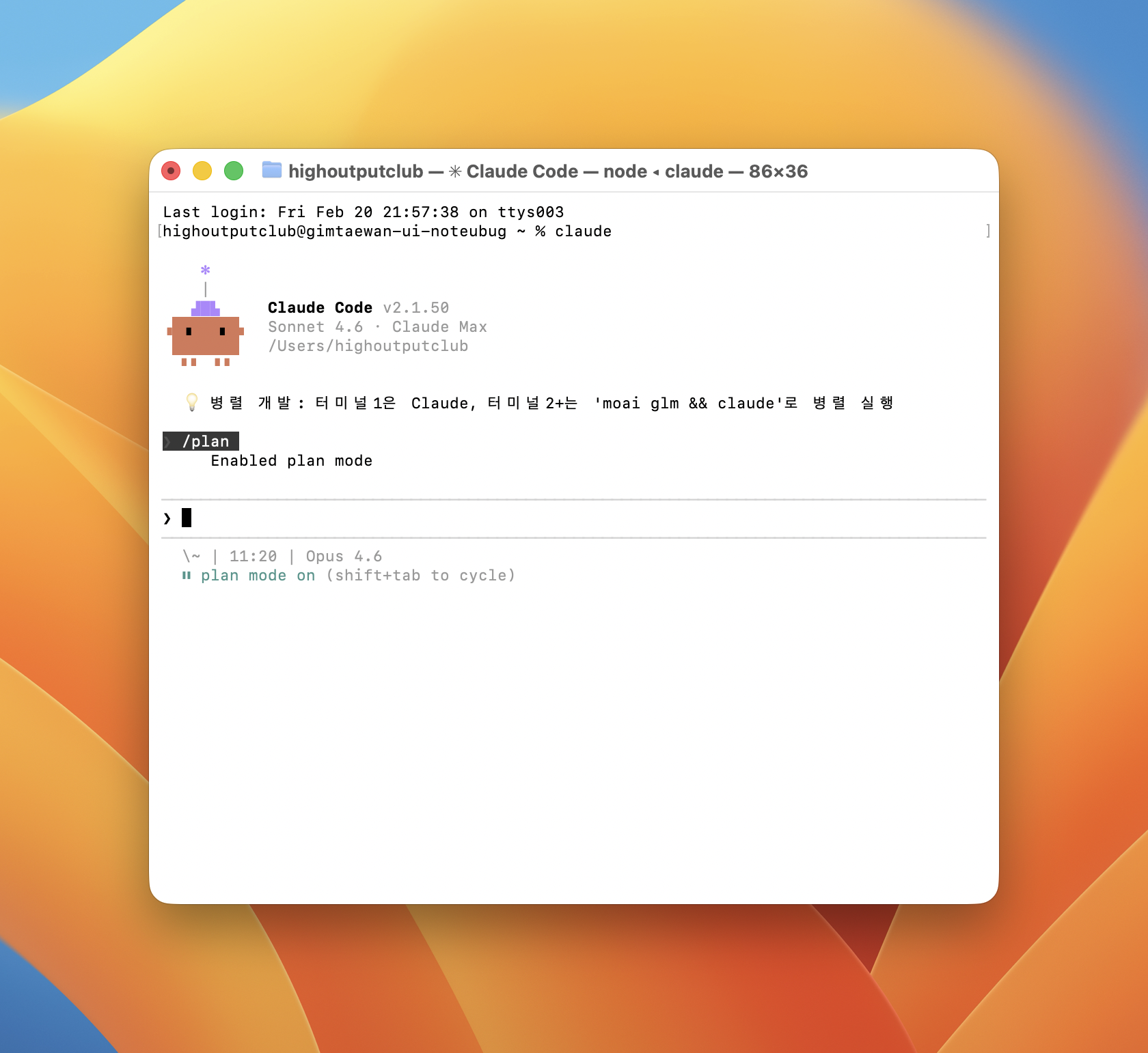 * **Plan Mode**: Claude Code가 사용자의 요청을 분석하고, 어떤 파일을 수정하고, 어떤 명령어를 실행할지 등 구체적인 계획을 제시하는 단계입니다. 이 계획을 검토하고 승인하거나 수정할 수 있습니다.