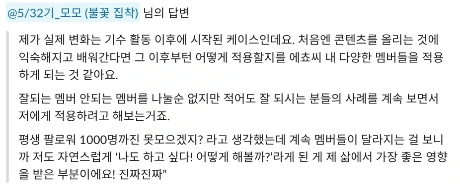 Q “컨설팅이나 코칭을 해주는 것도 아닌데, 멤버들이 각자 콘텐츠를 만들어야 하는 구조에서 어떻게 하이아웃풋클럽 활동 후에 변화가 있다고 할 수 있나요?